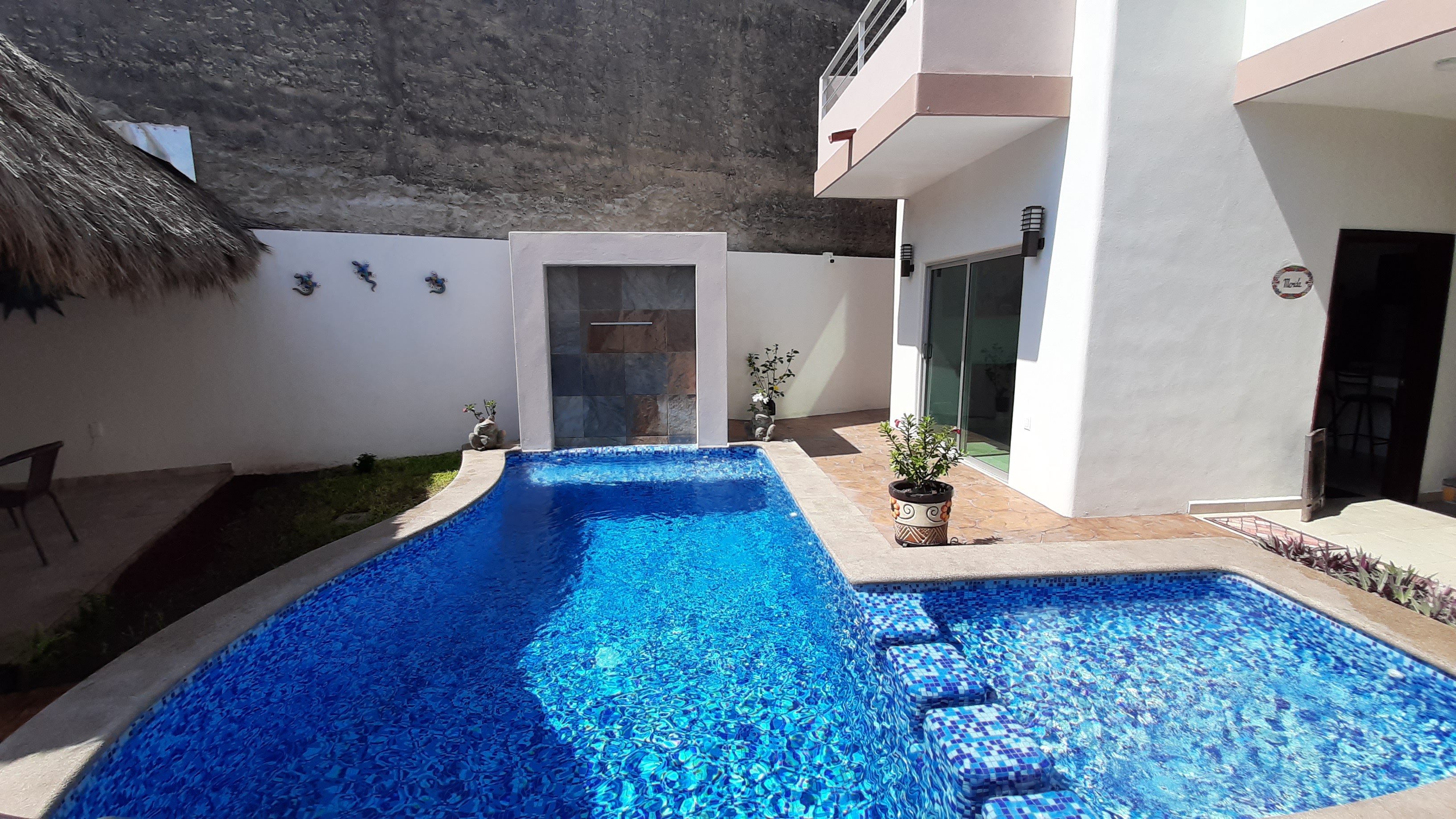 This 1 bedroom apartment has TV , wifi , Air conditioned bedroom and is right in town walking distance to everything, shopping, restaurants, entertainment, beach. It is in a 4 plex , has a pool , palapa sitting area, BBQ area ,out door shower and is well maintained. Rentals are by the month, or minimum 2 weeks. Discounts for longer stays.